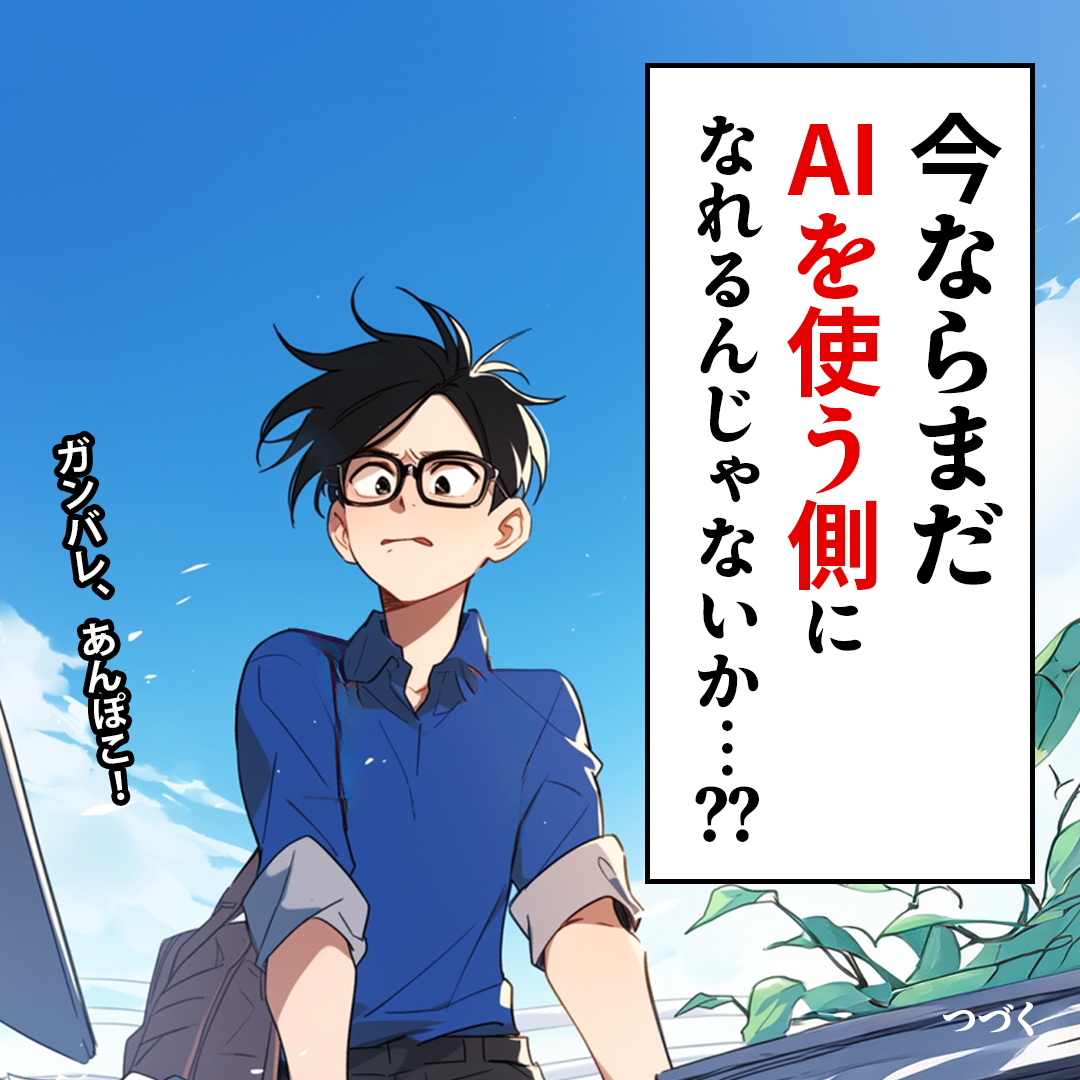 あなたのスキル・状況にあった学習計画を作り、広告に使えるレベルのAI漫画を作れるようサポートします。